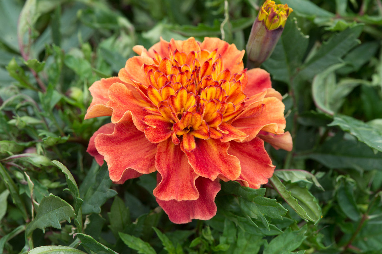Growing to 30cm-60cm tall. Large showy double flowers in a mix of gold, Red and orange. Attracts pollinators and good companion plant in the vegetable garden also good on salads or can be eaten fresh